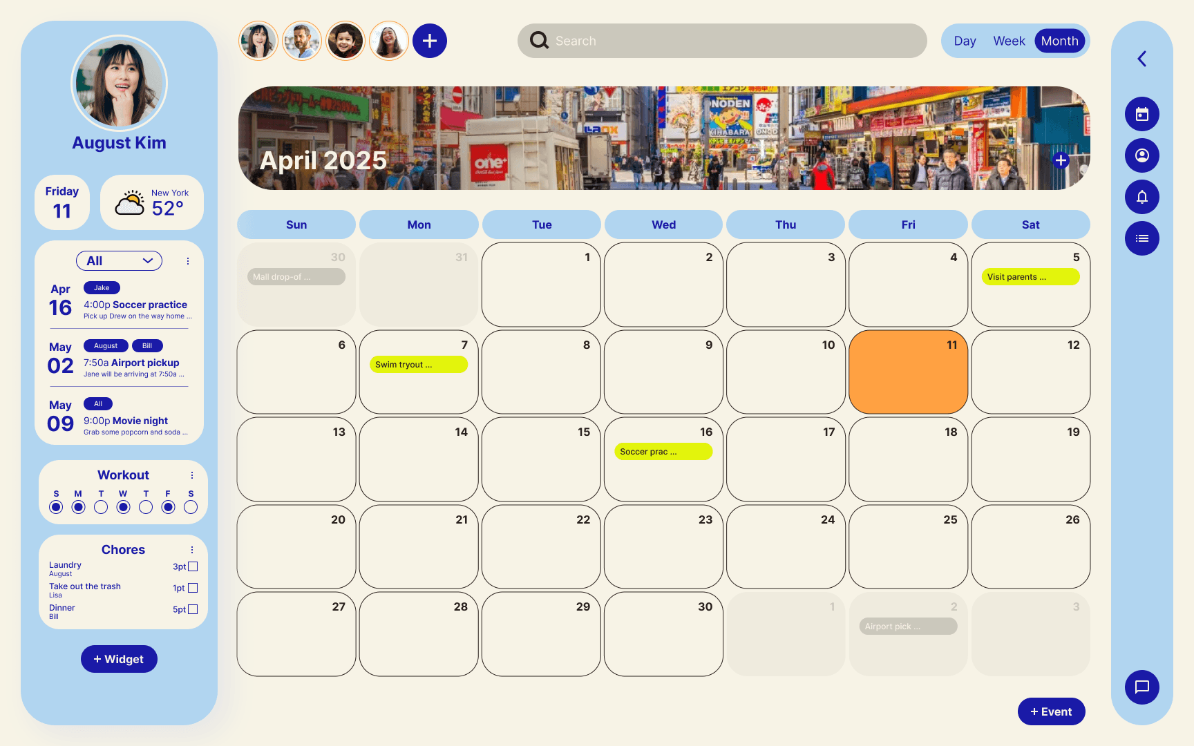 A calendar app that organizes events, chores, and tasks while letting you share moments and stay engaged.